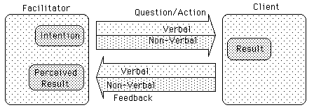 The feedback coming back from the client becomes the basis for the next question or action that the facilitator does. She is not acting blindly. She notices the result of what she did before, and based on that she starts a new communication.